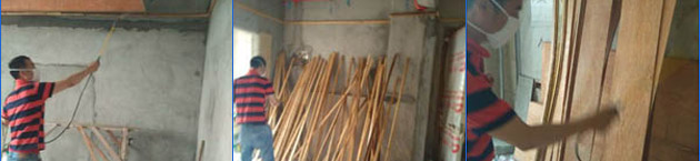 1、開工前對所有可能與木料接觸的墻體部位進(jìn)行噴藥(具體指窗套、門套、墻裙、堤角線、各類柜子與墻接觸的墻面);墻體無木料部位噴1米以下!